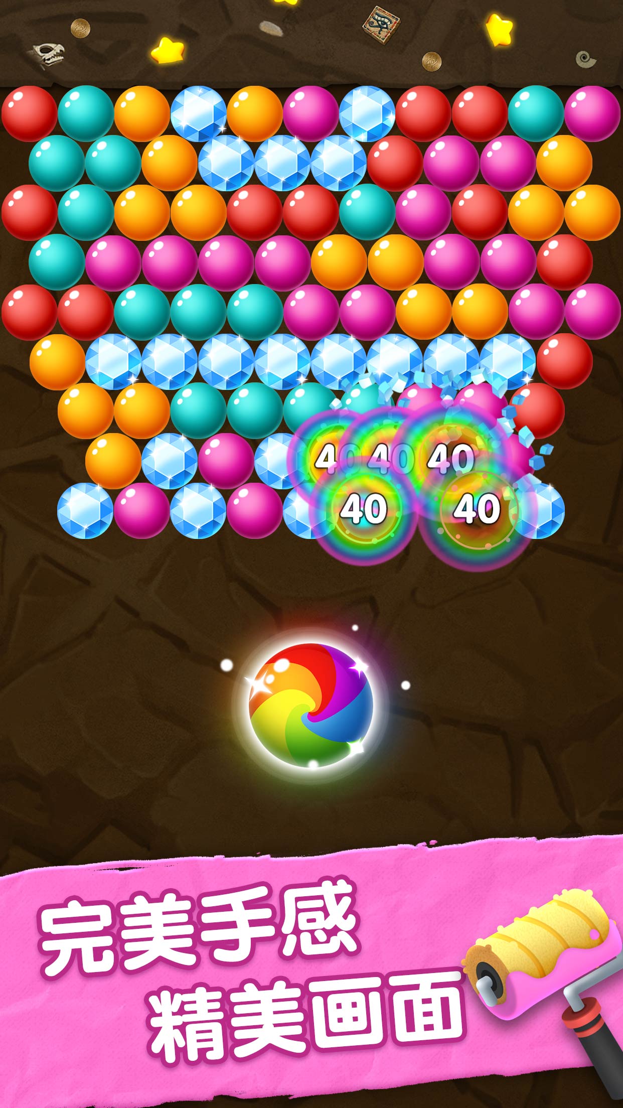 2. 关卡设计繁多,各具特色的布局与泡泡分布,大大提升游戏趣味性与挑战性。