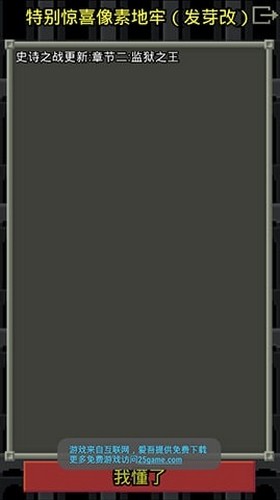《惊喜的像素地牢》是一款极具魅力的安卓平台游戏。其采用独特的像素艺术风格,打造出一个充满幻想色彩的地下城世界。在游戏中,玩家将扮演一名勇敢的探索者,深入神秘的地宫展开激动人心的冒险旅程。在此过程中,每一次行动都充满变数与挑战,丰富的神秘道具和强力的怪物等待着探索与征服。虽然画面设计简洁,但表现力强烈,能让玩家迅速沉浸在紧张刺激的地下城探险中,享受一段令人心跳加速的奇幻旅程。