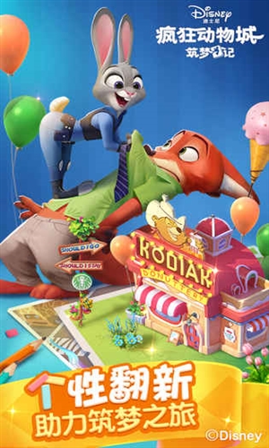 《疯狂动物城:筑梦日记》是一款以迪士尼人气动画电影《疯狂动物城》为基础,经过精心设计的模拟经营类手机游戏。游戏画面细腻还原动画场景,色彩绚丽夺目,生动展示了动物城的繁华景象与充满活力的氛围。玩家将扮演一名城市设计师,在这片充满梦想与希望的土地上,发挥智慧与创造力,建造各式特色建筑物,并与可爱的动物市民进行趣味互动,开启一段激动人心的梦想建造之旅。