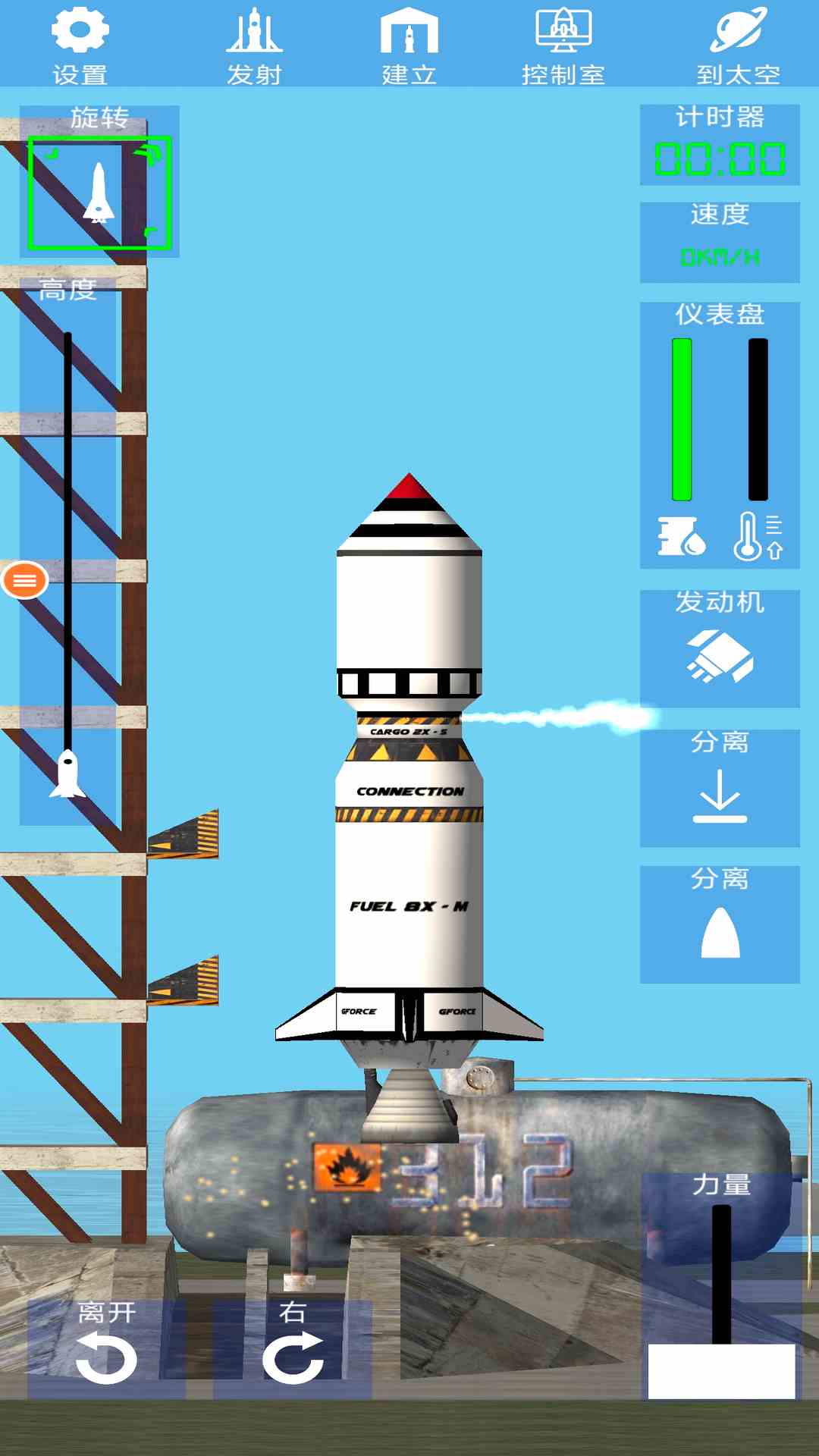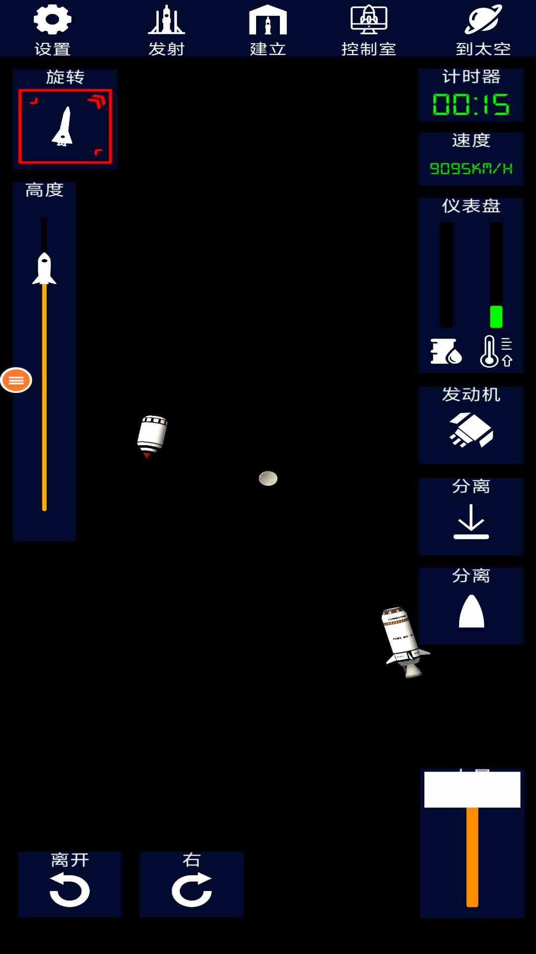 2. 部件自由组合:提供超200种组件,包括鹰发动机、太阳能板、侧分离器等。玩家可设计正三角形配重火箭,或通过侧分离器实现助推器对称分离,提升稳定性。