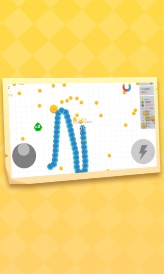 2. 吃食成长:引导蛇吃到场上的各种食物,不断延长身体,提高实力,让蛇变得更强大自如。