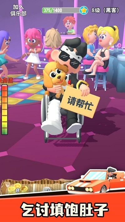 《乞讨人生官方版》是一款以流浪汉逆袭为主题的沉浸式模拟手游,玩家将扮演一名身无分文的乞丐,通过乞讨、偷窃、打工等多元方式在城市中艰难求生。游戏以写实的3D地图为背景,昼夜交替与四季变化直接影响生存策略——冬季需寻找保暖衣物,雨季需躲避降雨以避免生病,而每天随机触发的3-5个突发事件(如遭遇警察驱赶或获得意外援助)更让每一局游戏充满变数。玩家需管理角色健康值、饥饿度等生存指标,同时通过完成目标解锁15种实用技能(如快速伪装、乞讨话术),逐步积累财富购买食物、衣物甚至房产,最终实现从乞丐到富豪的逆袭人生。